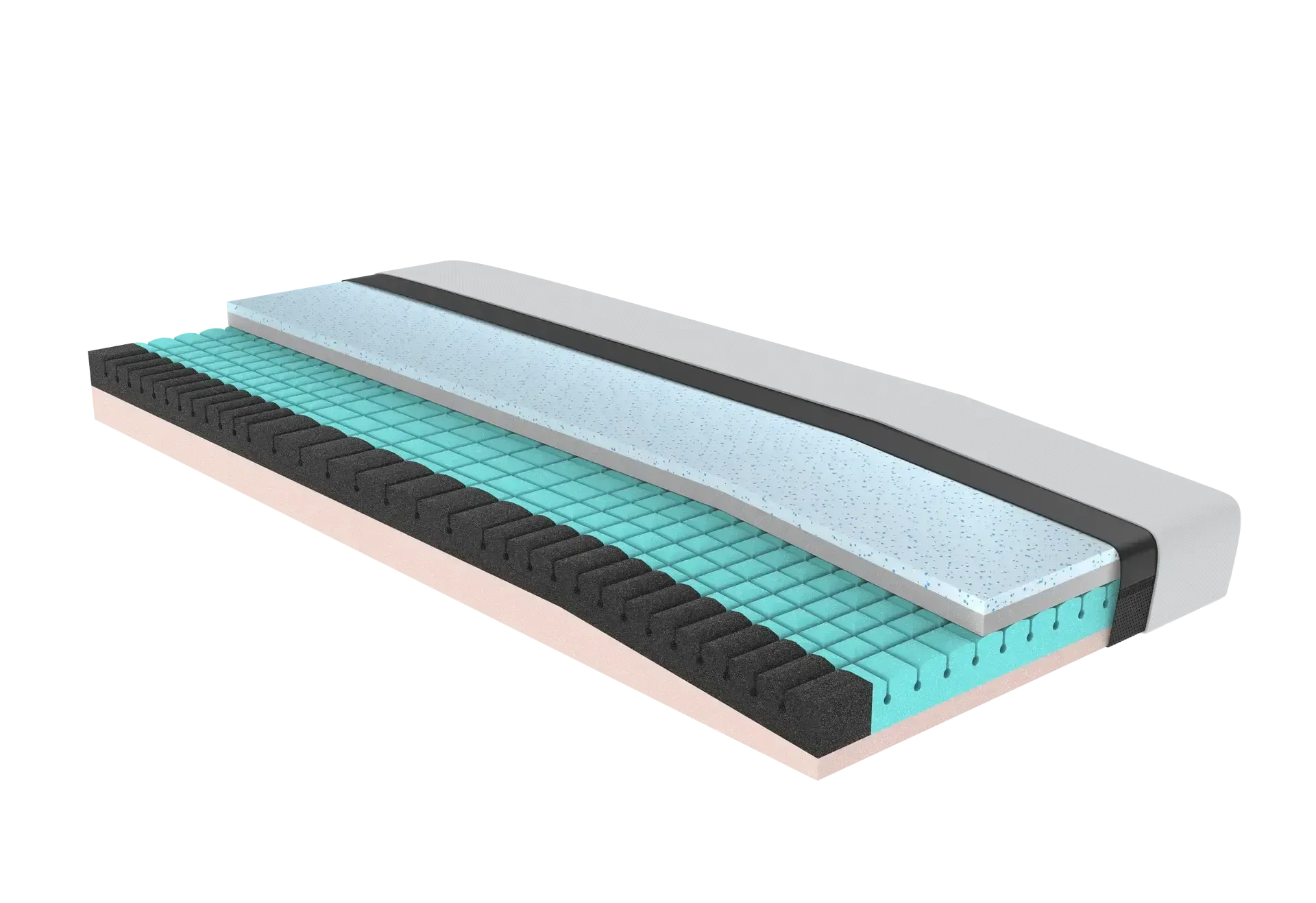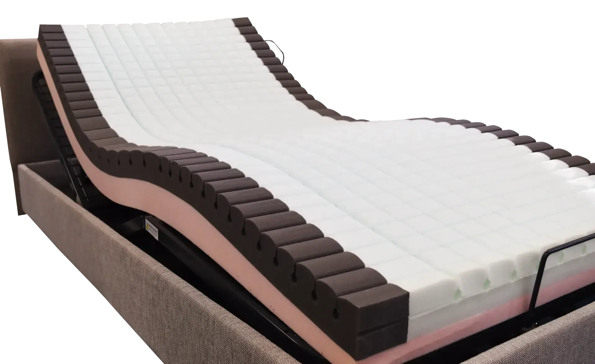 | Airoform immersion & envelopment comfort foam technology | High density, postural & spinal support comfort secondary layer | High density, sacral support foundation layer & engineered base with specialised hinges allows profiling to electric/adjustable bed platforms |